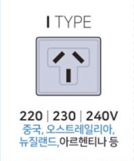 I형 | 🇦🇺 호주, 🇳🇿 뉴질랜드, 🇨🇳 중국(C형과 혼용), 🇦🇷 아르헨티나 |